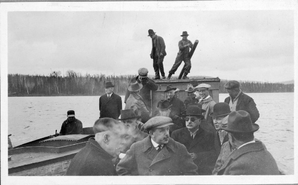 Rivière Saint-Maurice - Du barrage Gouin au rapide Allard - Gouin visit , party on boat, 25 mai 1917, Archives nationales à Québec, Fonds Ministère de l'Environnement et de la Lutte contre les changements climatiques, (03Q,E57,S44,SS1,D76,PY-590), Photographe non identifié.