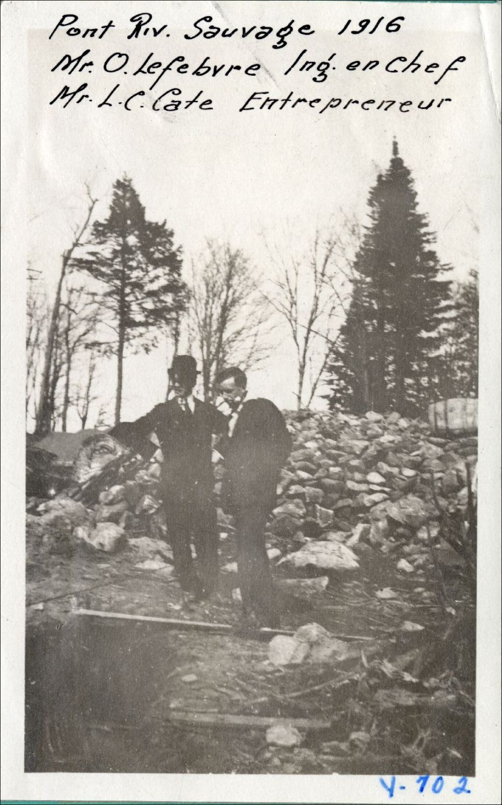 Rivière Sauvage - Construction du pont - O. Lefebvre, ingénieur en chef et L. C. Cate, entrepreneur