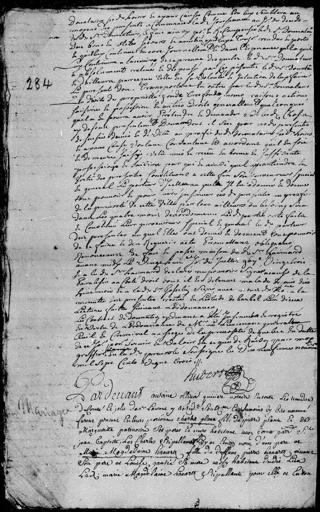 Contrat de mariage passé pardevant maître Antoine-Olivier Quiniart, notaire pour toute l'étendue du comté et de l'île Saint-Laurent (île d'Orléans), entre Charles Plante, fils de Pierre Plante et de Marguerite Patenaude, ses père et mère, habitant audit comté, paroisse Saint-Jean-Baptiste; et Marie-Madeleine Avard (Havard), fille de défunt Pierre Avard et de Louise Gauthier, aussi habitants dudit lieu, 22 septembre 1723 [Document insinué le 1 er décembre 1723], Archives nationales à Québec, Fonds Cour supérieure. District judiciaire de Québec. Insinuations, (03Q,CR301,P1034).
