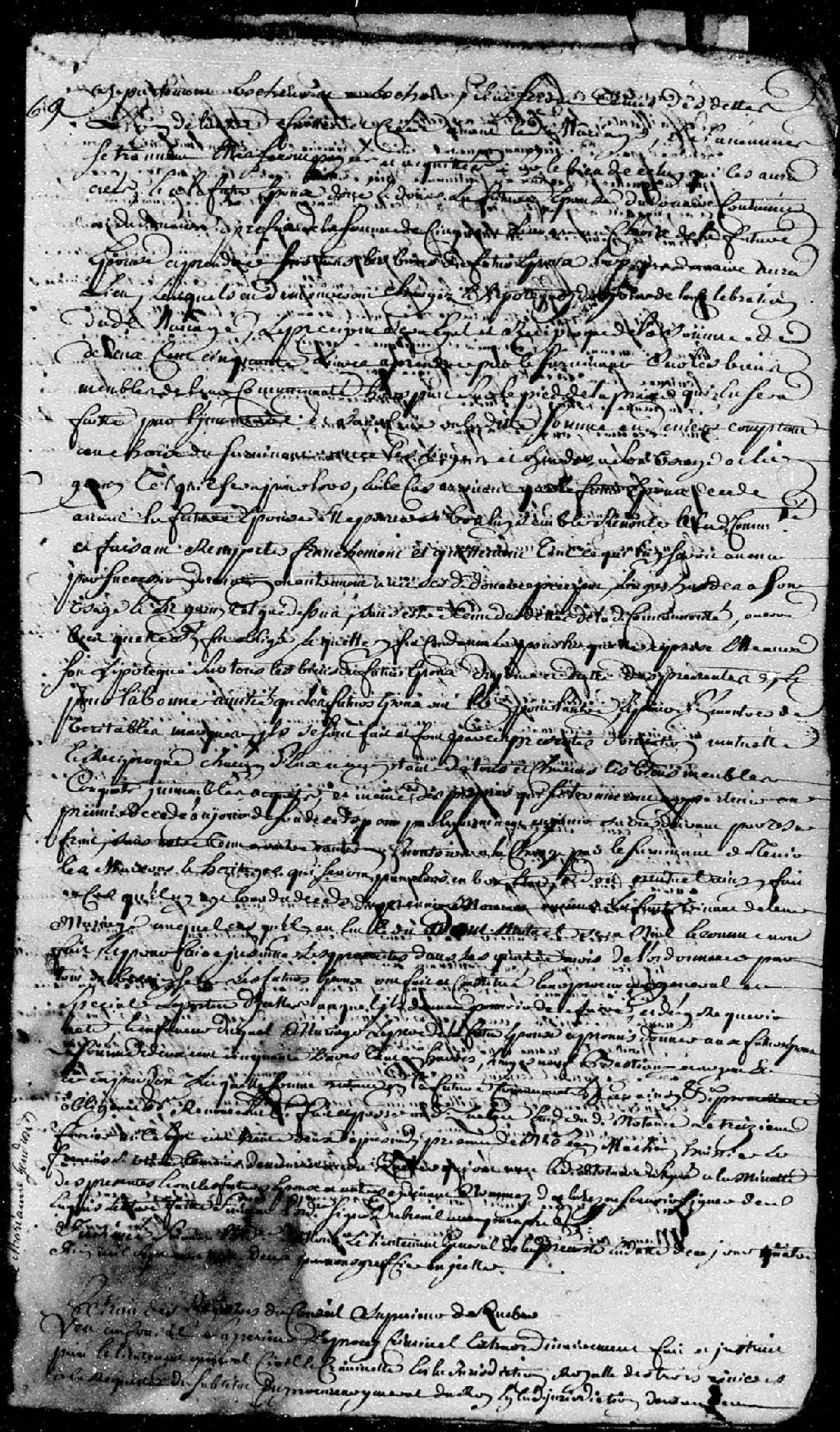 - Ordonnance du Conseil Supérieur de Québec enjoignant que la sentence en appel à minimâ de Marie-Anne Gendron, accusée de s'être pendue et étranglée (suicide) et condamnée d'avoir détruit et homicidé son enfant (infanticide) sera effective, soit à une potence qui sera dressée en place publique et de ce fait son corps jeté à la voirie par l'exécuteur de la Haute justice, sauf que l'exécution de celle-ci se fera à Québec au lieu des Trois-Rivières.