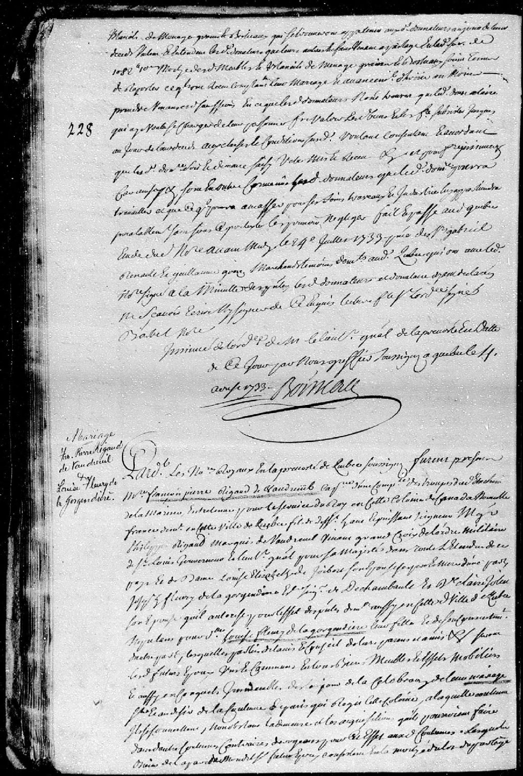 Contrat de mariage entre François-Pierre Rigaud de Vaudreuil et Louise Fleury de la Gorgendière (LaGorgendière).
