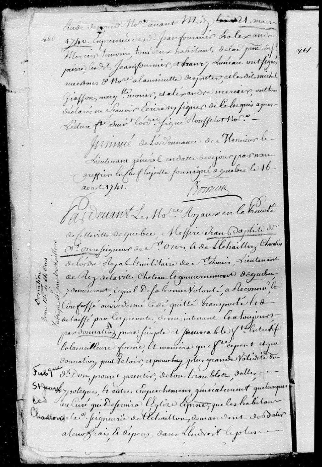 - 11 mars 1735 et 11 mars 1741 (Document insinué le 16 août 1741)