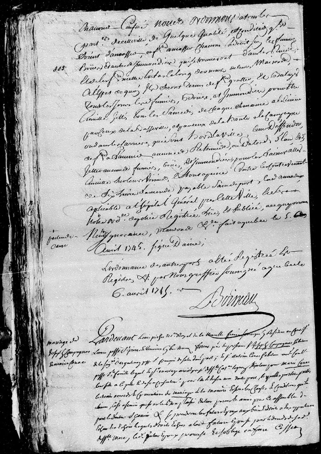 22 décembre 1744 (Document insinué le 6 avril 1745)