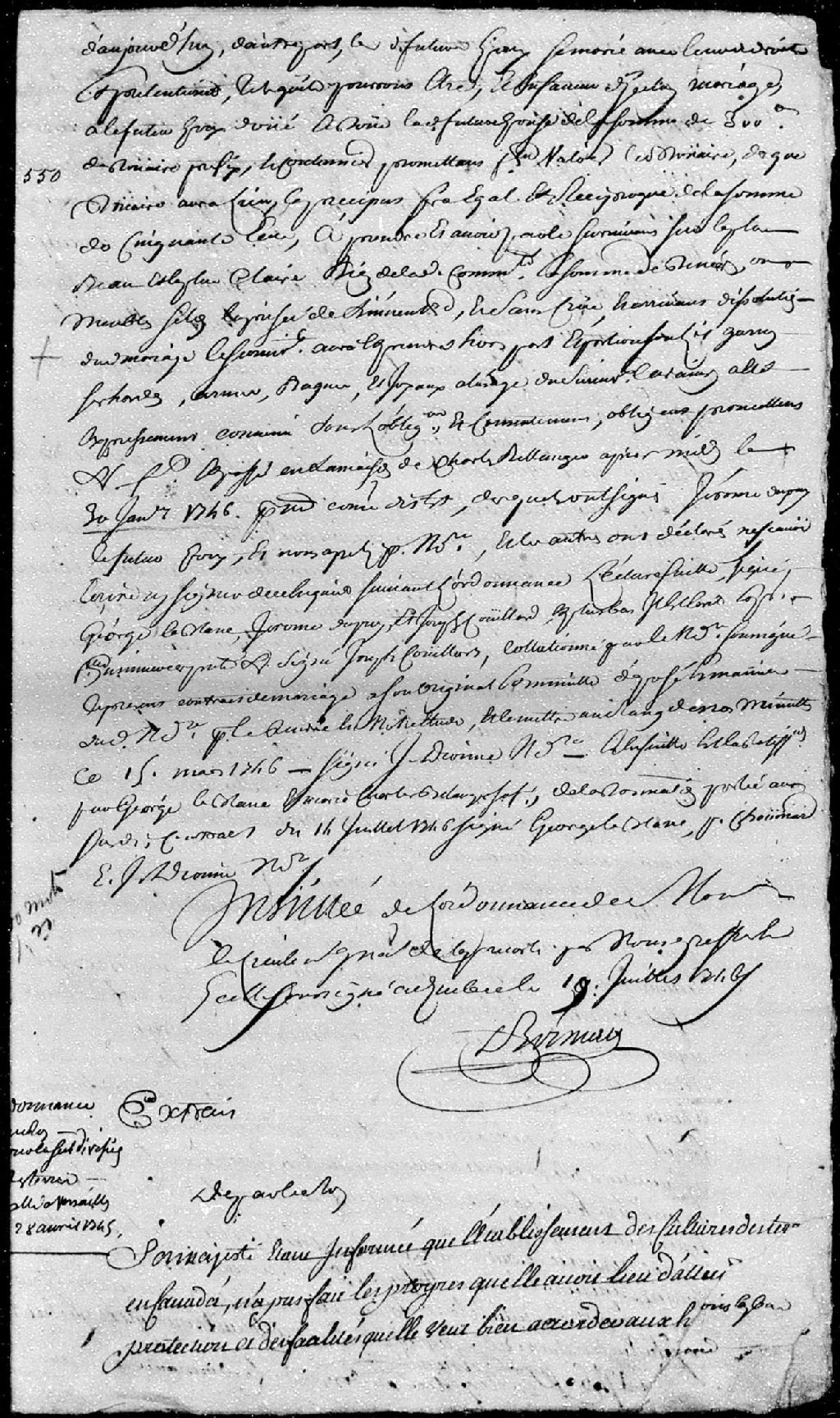 - 28 avril 1745 et 18 juillet 1746 (Insinué le 22 juillet 1746)