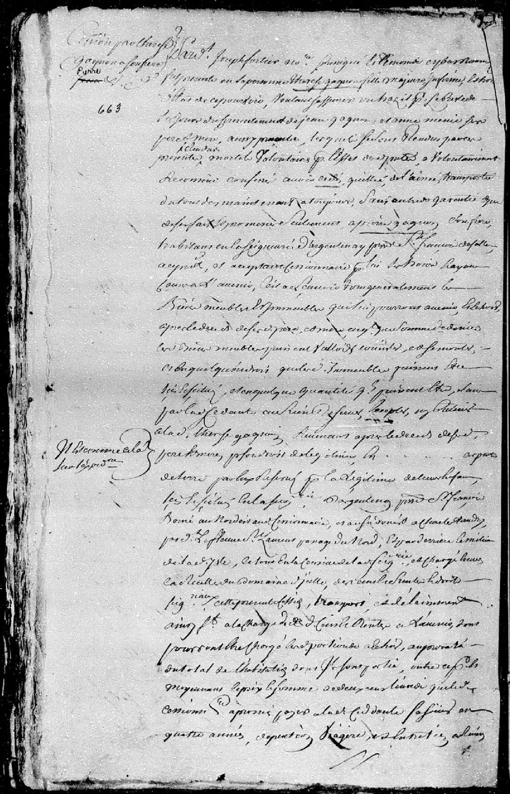 Cession par Thérèse Gagnon, fille majeure, infirme; à Pierre Gagnon, son frère, habitant en la seigneurie d'Argentenay, paroisse Saint-François-de-Sales; à savoir tous les biens meubles et immeubles qui pourront échoir à Thérèse Gagnon après le décès de ses père et mère; le présent acte de cession est passé pardevant Joseph Fortier, notaire, 8 février 1746 (Document insinué le 7 février 1747), Archives nationales à Québec, Fonds Cour supérieure. District judiciaire de Québec. Insinuations, (03Q,CR301,P2709).