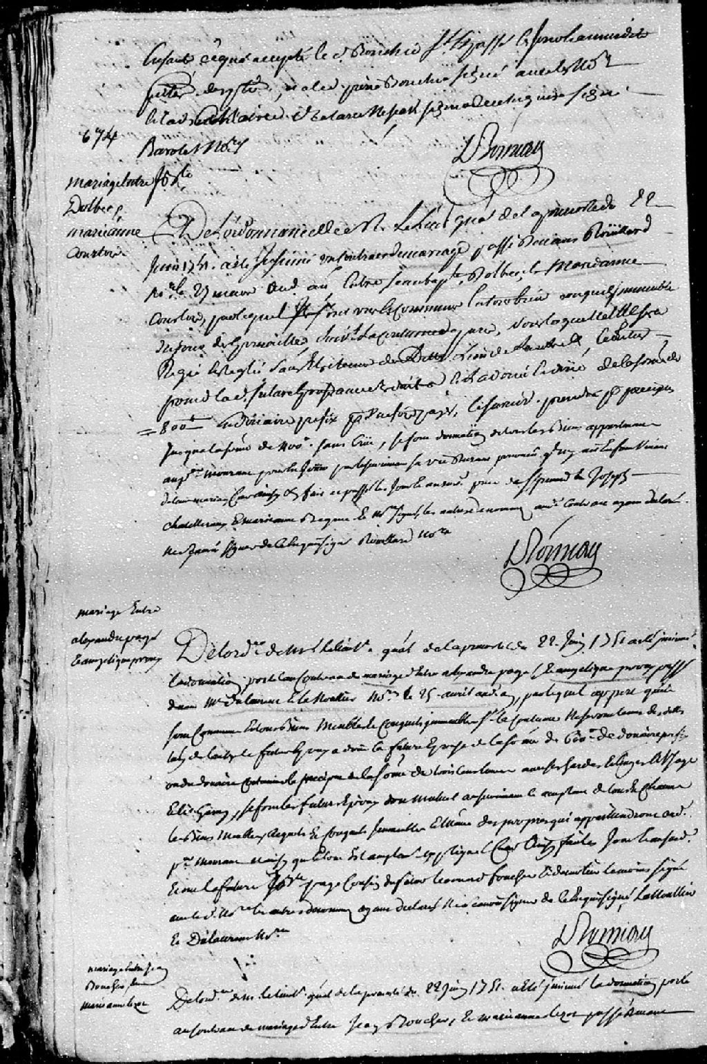 Extrait du contrat de mariage passé pardevant Dulaurent et Lanoullier (Lanouiller), notaires, entre Alexandre Pagé et Angélique Proux (Proulx - Prou)