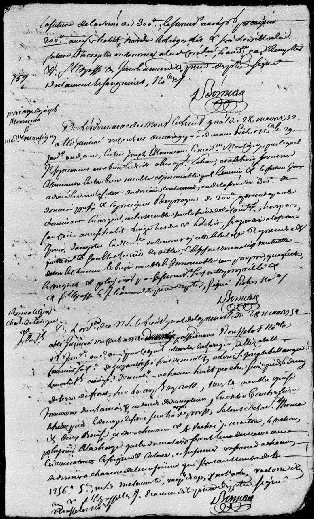 Extrait du contrat de mariage passé pardevant maître Pichet, notaire, entre Joseph Létourneau et Madeleine Montigny