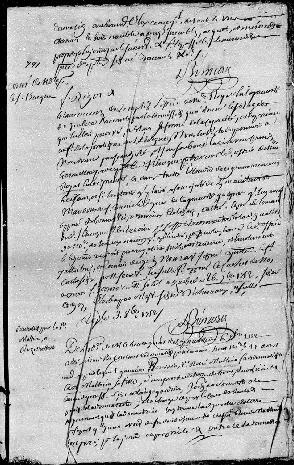 26 septembre 1752 [Document insinué le 3 octobre 1752]