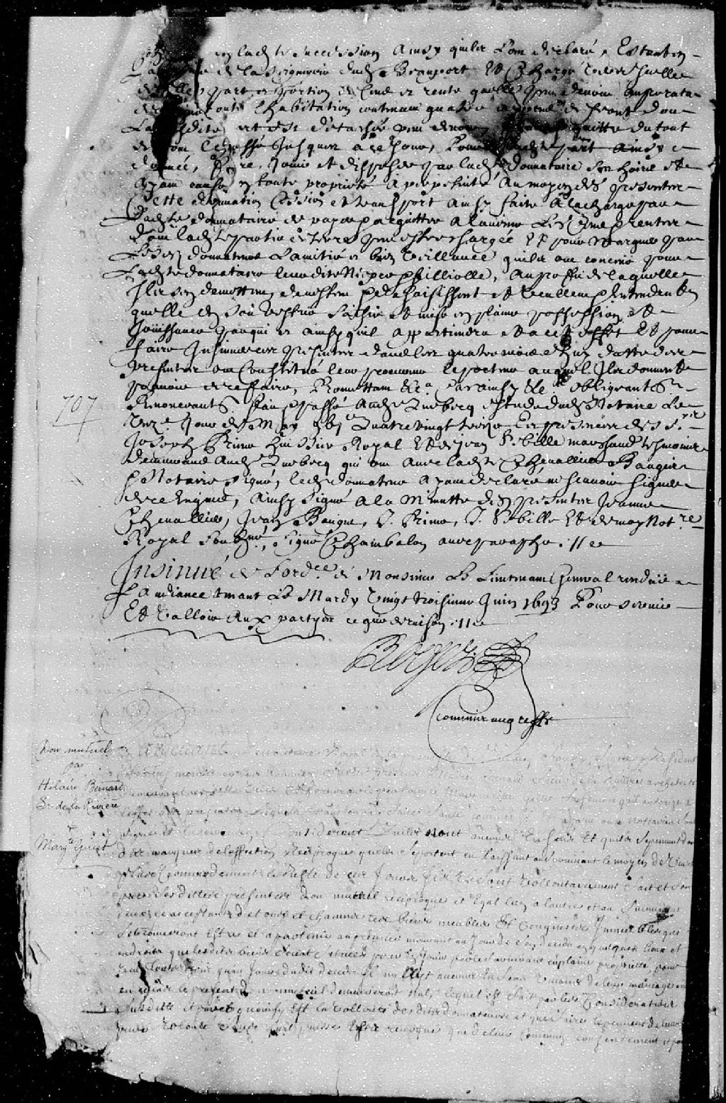 22 octobre 1693 [Document insinué le 27 octobre 1693]
