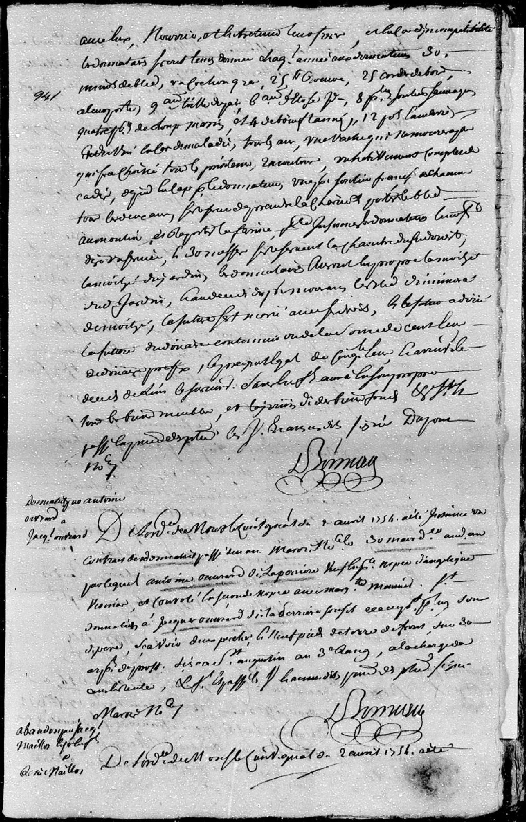 Abandon par Jacques Maillot, veuf de feue Marie-Angélique Ouy (Houy), de tous les biens meubles et immeubles constituant la communauté entre ledit Maillot et sa défunte femme; au profit de Charles Maillot, Jacques Maillot dit Boisclair, Nicolas Maillot, René Maillot, Joseph Prévost et Marie Maillot; tous héritiers; le présent acte est passé pardevant maître Pillard, notaire, 26 janvier 1754 [Document insinué le 2 avril 1754], Archives nationales à Québec, Fonds Cour supérieure. District judiciaire de Québec. Insinuations, (03Q,CR301,P3771).