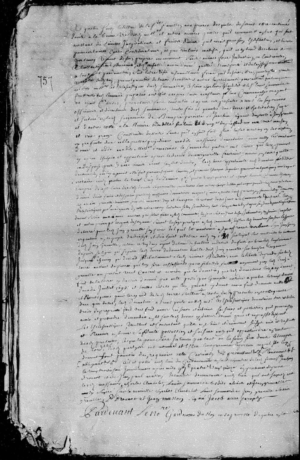 Acceptation par Henri de Bernières, supérieur du Séminaire des Missions étrangères établi à Québec, François Dupré et Louis Ango, sieur des Maizerets, officiers directeurs dudit Séminaire, de la donation faite par Alexis Gravel, d'une terre et habitation située en la seigneurie de Beaupré..., 17 août 1695 et 18 septembre 1695 [Insinué le 4 octobre 1695], Archives nationales à Québec, Fonds Cour supérieure. District judiciaire de Québec. Insinuations, (03Q,CR301,P396).