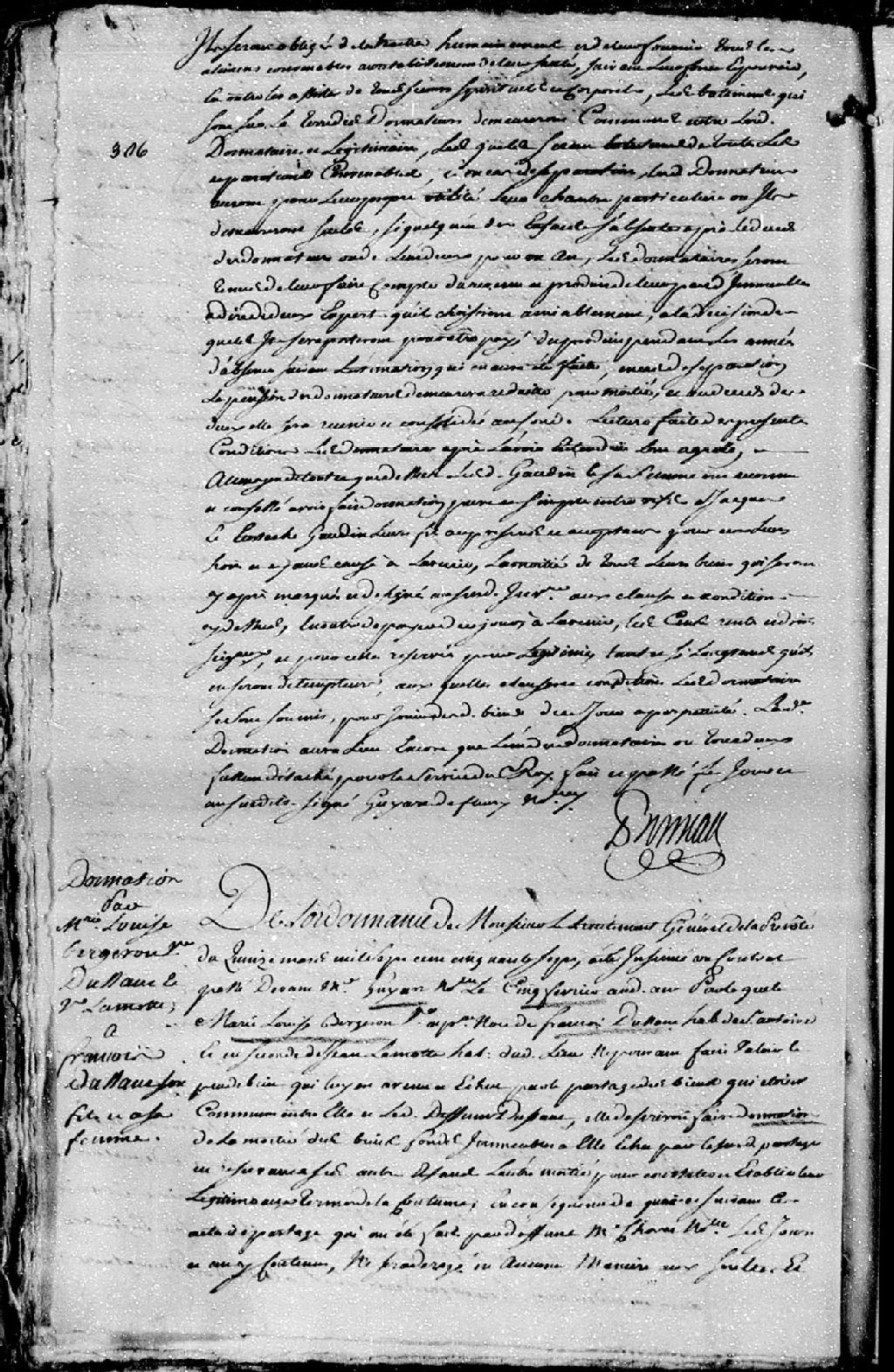 Donation par Marie-Louise Bergeron, veuve en premières noces de défunt François Dussault, habitant de Saint-Antoine, et en secondes noces de feu Jean Lamotte (Lamothe), aussi habitant de Saint-Antoine; à François Dussault, son fils, et Josephte Demers, son épouse; à savoir la moitié, faisant le quart au total, des biens de la communauté de la donatrice avec feu François Dussault; la présente donation est passée pardevant maître Guyart, notaire, 5 février 1757 [Document insinué le 15 mars 1757], Archives nationales à Québec, Fonds Cour supérieure. District judiciaire de Québec. Insinuations, (03Q,CR301,P4196).