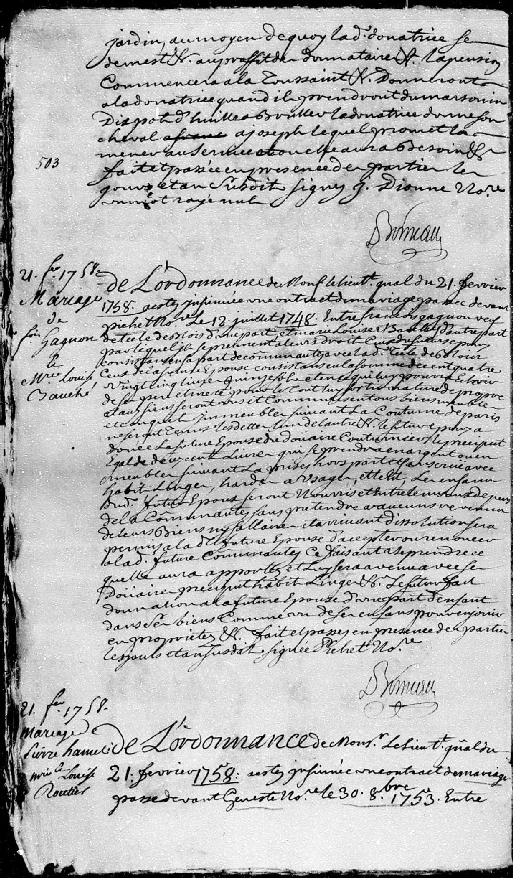 30 octobre 1753 [Document insinué le 21 février 1758]