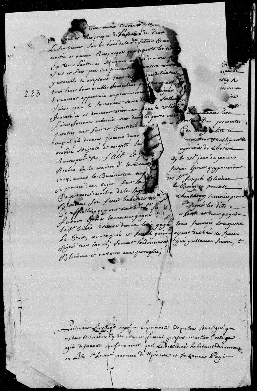 Donation passée pardevant maître Chambalon, notaire royal en la Prévôté de Québec, par Martin Côté, âgé de 69 ans, habitant demeurant en l'île d'Orléans, paroisse Saint-Pierre, et Suzanne Pagé, sa femme; à Pierre-Martin Côté, leur fils mineur de 22 ans; ladite donation est constituée d'une terre et habitation sise à l'île d'Orléans, paroisse Saint-Pierre, avec la maison, grange et étable qui y sont construites, ainsi que deux boeufs et deux vaches
