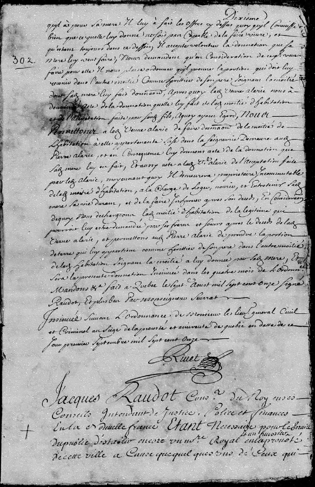 Commission de notaire royal et d'huissier en la Prévôté de Québec accordée à François Rageot, suivant une ordonnance de l'intendant Jacques Raudot, 24 octobre 1711 [Document insinué le 20 novembre 1711], Archives nationales à Québec, Fonds Cour supérieure. District judiciaire de Québec. Insinuations, (03Q,CR301,P706).