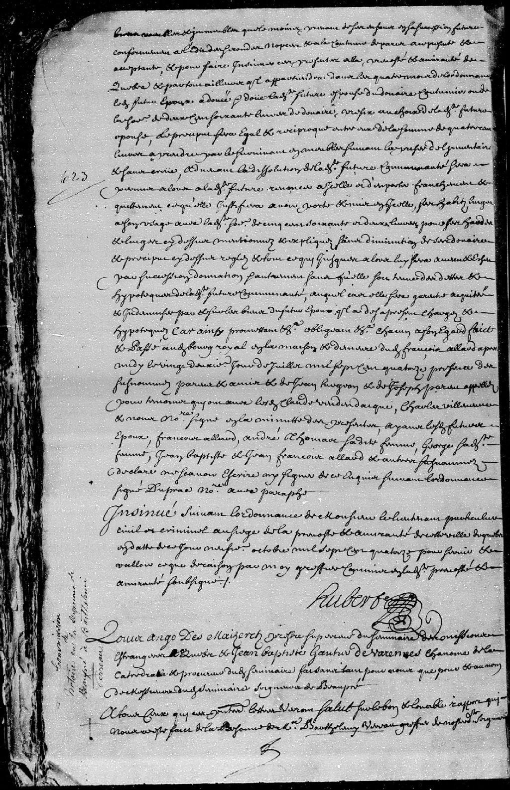 Commission de notaire au baillage et seigneurie de Beaupré accordée à Barthélemi Verreau, greffier de ladite seigneurie, 9 octobre 1714 [Document insinué le 9 octobre 1714], Archives nationales à Québec, Fonds Cour supérieure. District judiciaire de Québec. Insinuations, (03Q,CR301,P841).