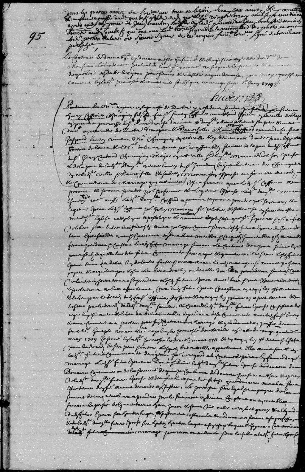Contrat de mariage passé pardevant maître Barbel, notaire royal en la Prévôté de Québec, entre Henri Coffinier, chirurgien, fils de feu Simon Coffinier, marchand épicier de la ville Roye en Picardie, paroisse Saint-Pierre, évêché d'Amiens, et de Marie Mercier, ses père et mère, demeurant en cette ville de Québec; et Marie-Thérèse Coiffard, veuve de feu Gaspard Émery, vivant maître chirurgien en cette ville de Québec