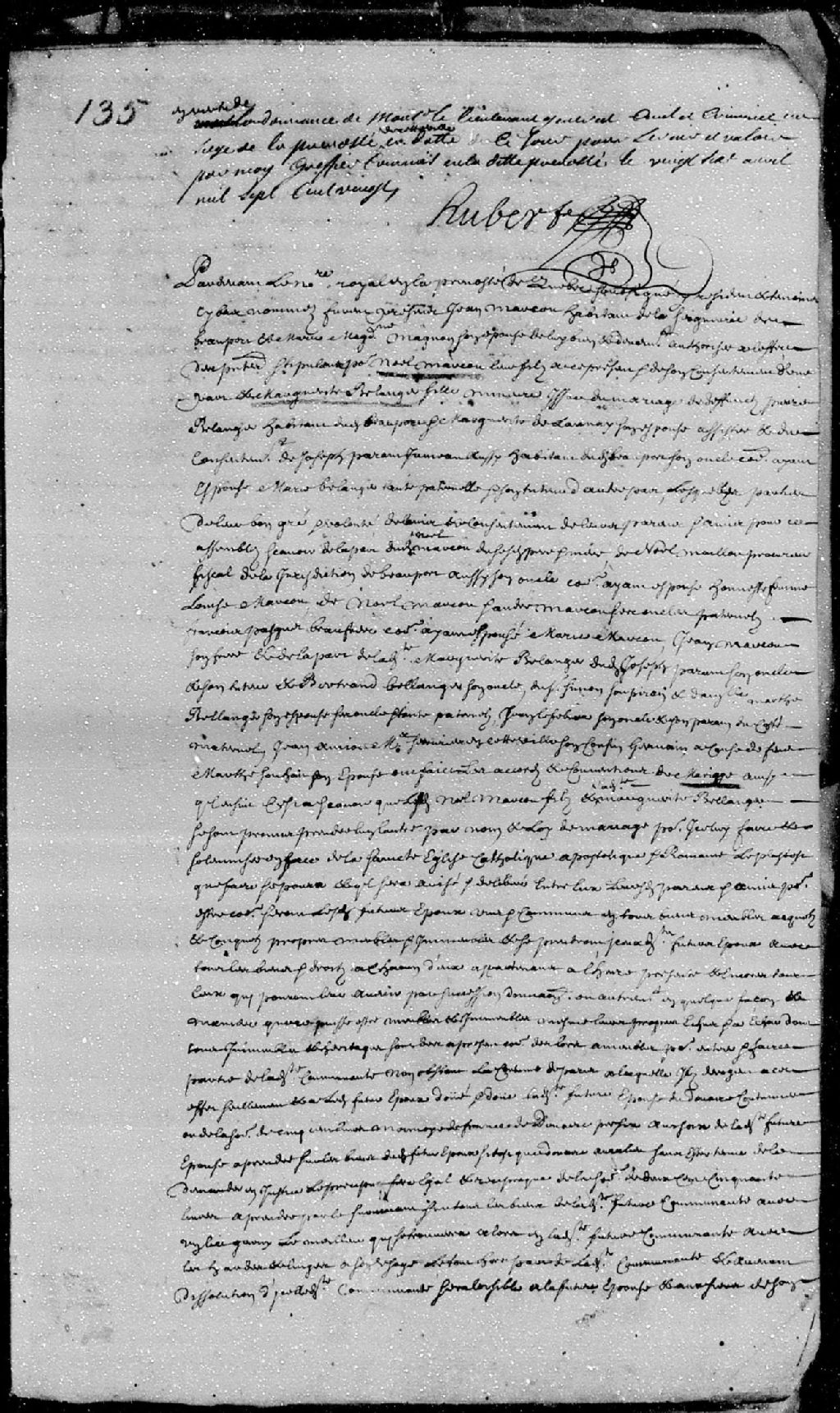 Contrat de mariage passé pardevant maître de LaCetière (La Cetière), notaire royal en la Prévôté de Québec, entre Noël Marcoux, fils de Jean Marcoux, habitant de la seigneurie de Beauport, et de Marie-Madeleine Magnan; et Marguerite Bélanger, fille mineure issue du mariage du défunt Pierre Bélanger, vivant habitant de Beauport, avec Marguerite Delaunay