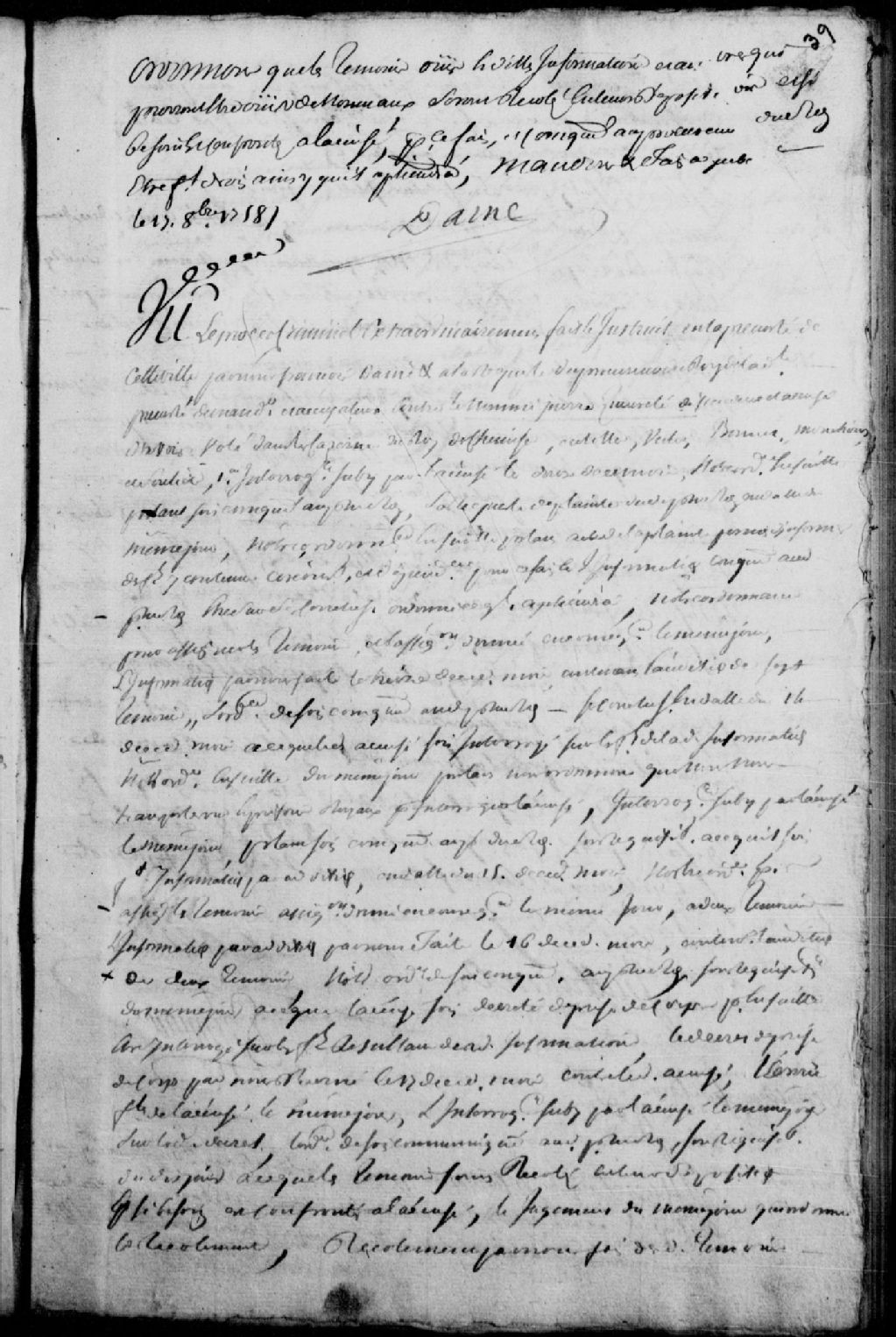 Procès de Pierre Queureté, défendeur, accusé d'avoir volé des chemises, culottes, vestes, bonnets, mouchoirs et souliers dans les casernes du Roi ; informations, interrogatoire, dépositions de sept témoins, arrestation, récolements et confrontations, et interrogatoire sur la sellette ; une sentence est prononcée et l'accusé est trouvé coupable du vol en question, il est condamné à être battu nu et fustigé de verge, il sera marqué au fer chaud de la fleur de lys à l'épaule droite, il sera mené aux galères du Roi pour y servir comme forçat à perpétuité, ses biens seront confisqués et la somme de 50 livres d'amende sera remise au Roi