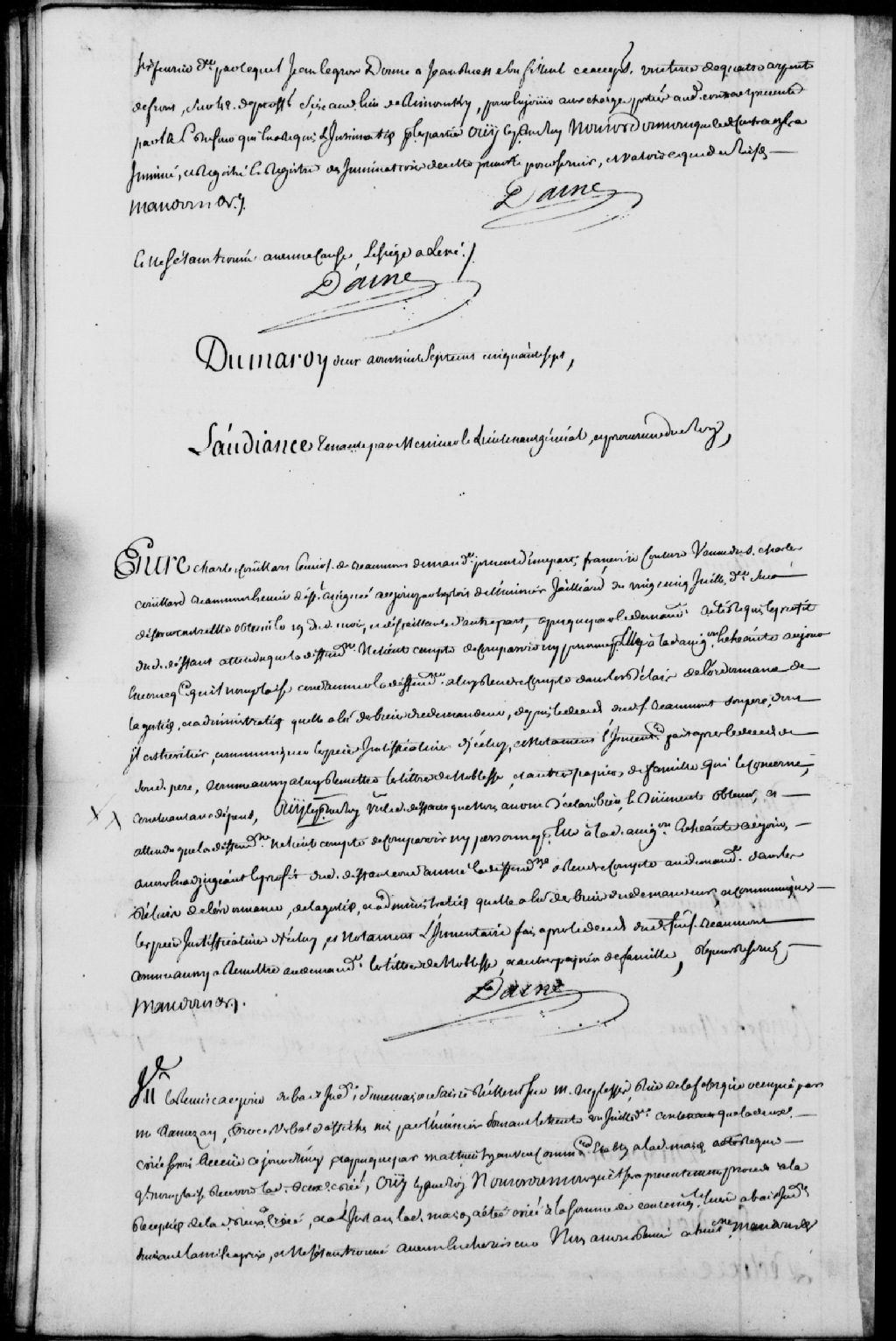 Cause entre Charles Couillard, écuyer, sieur de Beaumont, demandeur; et Françoise Couture, veuve de Charles Couillard, écuyer, sieur de Beaumont, défenderesse et défaillante pour la seconde fois, il est ordonné que ladite défenderesse soit tenue de rendre compte de la gestion et de l'administration des biens du demandeur depuis le décès dudit sieur de Beaumont, père de ce dernier, ainsi que de remettre les titres de noblesse et autres papiers de famille, dépens réservés, 2 août 1757, Archives nationales à Québec, Fonds Prévôté de Québec, (03Q,TL1,S11,SS1,D107,P1064).