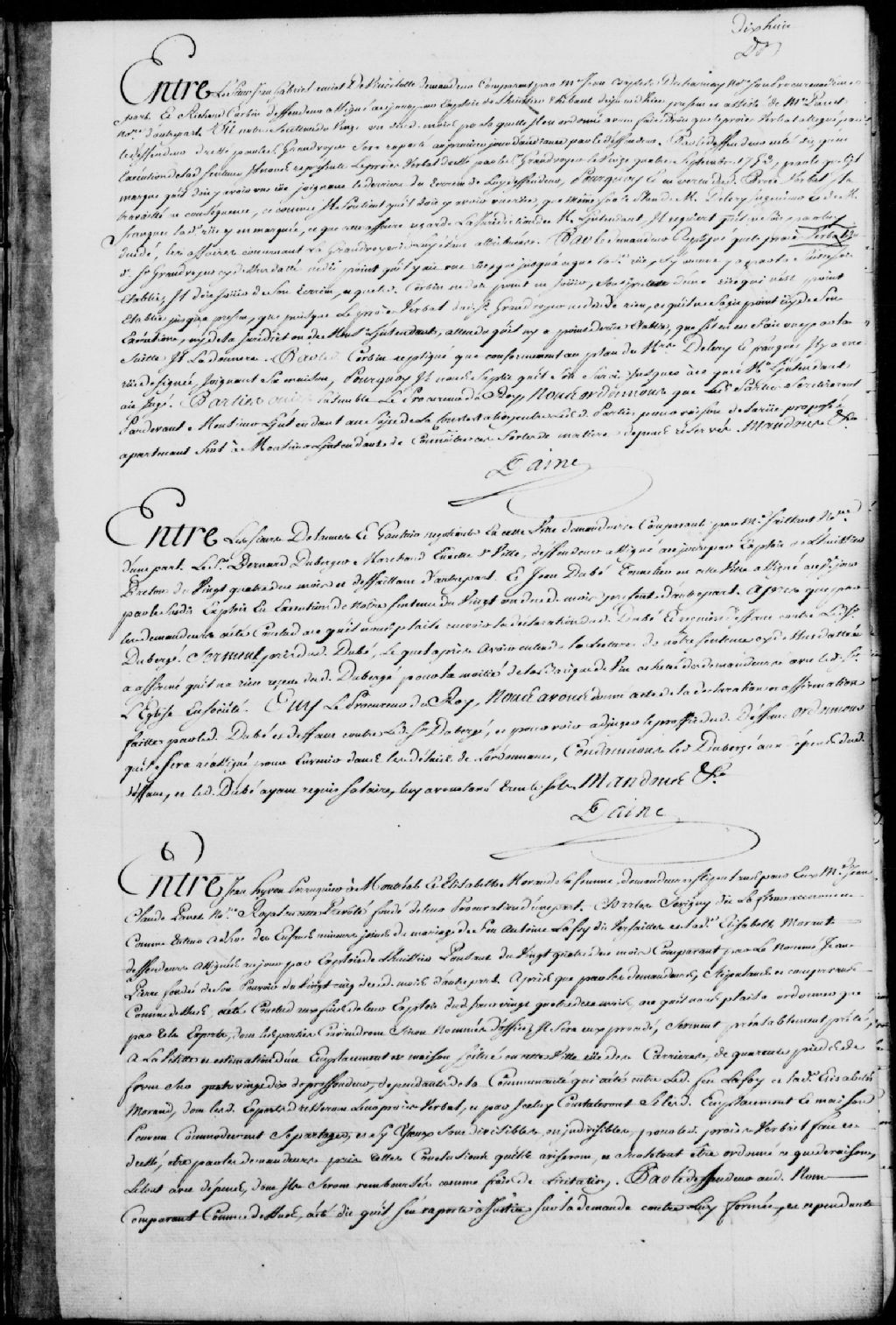 Cause entre Jean Hyvon (Yvon), perruquier à Montréal, et Élisabeth Morand, sa femme, demandeurs, stipulant par maître Jean-Claude Panet, notaire royal; et Charles Sévigny dit Lafleur, au nom et comme tuteur des enfants mineurs issus du mariage de feu Antoine Lafoy dit Versailles avec ladite Élisabeth Morand, défendeur, comparant par le nommé Jean Pierre, fondé de son pouvoir, nomination par les parties du sieur Lamorille, arpenteur, pour procéder à la visite et à l'estimation d'un emplacement et d'une maison sis rue des Carrières, dépendants de la communauté qui a été entre ledit feu Lafoy et ladite Morand, il est ordonné que ledit Lamorille dresse un procès-verbal qui constatera la divisibilité ou l'indivisibilité desdits emplacement et maison entre les parties, dépens réservés