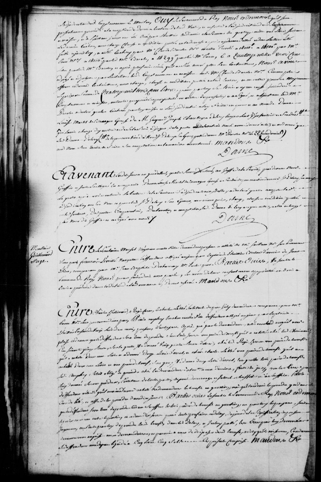 Cause entre Charles Chouinard, Régis Caron et Charles L'abbé (Labbé), habitants de Port-Joly [Saint-Jean-Port-Joli], demandeurs, comparant par maître Panet, notaire; et Pierre Aufrey, boucher de Québec, défendeur, lesdits demandeurs réclament que le défendeur soit tenu de prendre dans 8 jours les trois paires de boeufs qu'il a achetées, il est ordonné audit défendeur de prendre lesdites paires de boeufs achetées audits demandeurs dans 10 jours et de les payer suivant le prix convenu entre les parties, en plus d'être condamné à payer les dépens liquidés à 5 livres et 5 sols