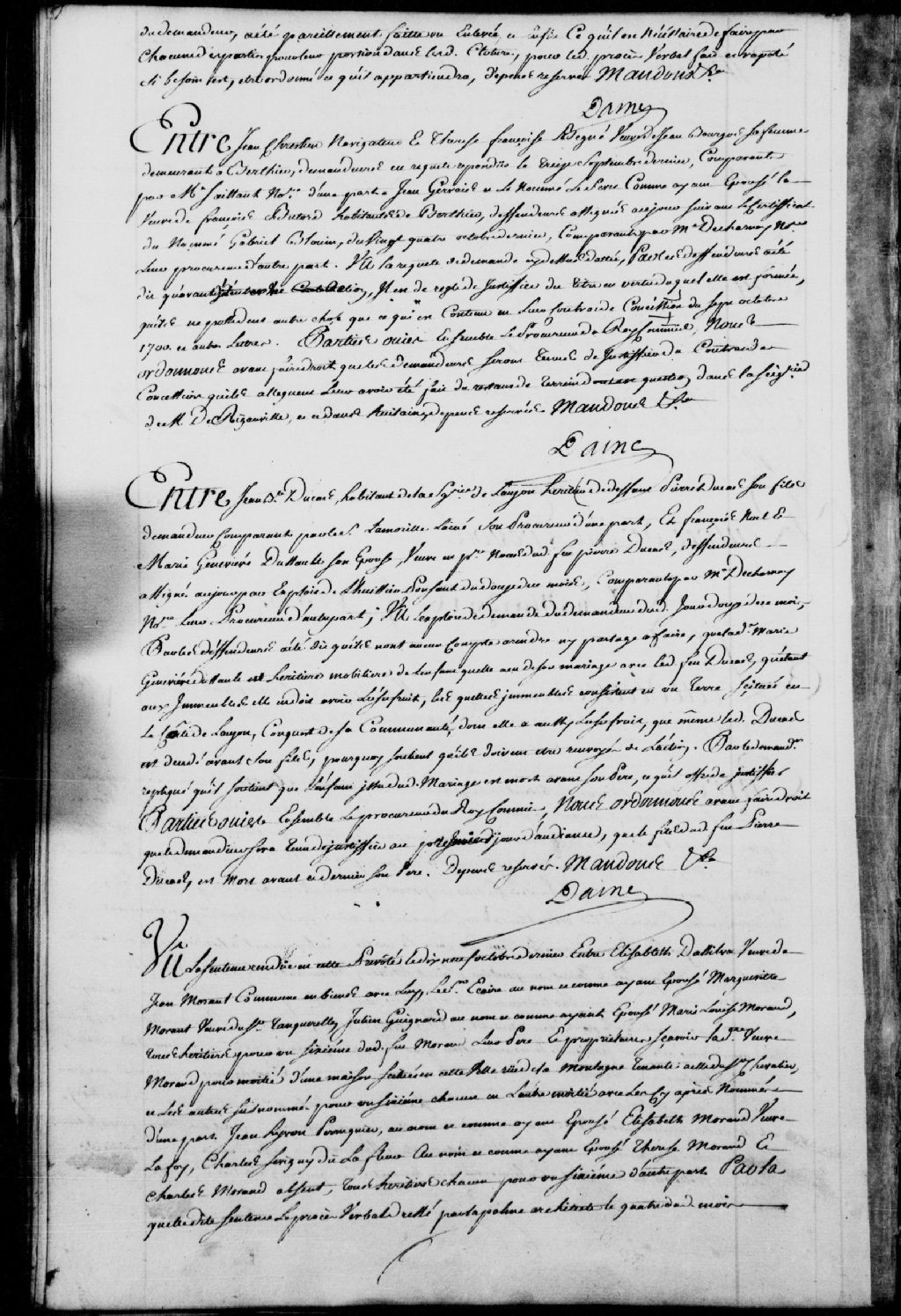 Cause entre Jean-Baptiste Ducat (Ducas), habitant de la seigneurie de Lauzon, héritier du défunt Pierre Ducat, son fils, demandeur, comparant par le sieur Lamorille l'aîné, son procureur; et François Noël et Marie-Geneviève Dussault, son épouse, veuve en premières noces dudit feu Pierre Ducat, défendeurs, comparant par maître Decharnay (Decharny), notaire, leur procureur, lesdits défendeurs déclarent qu'ils n'ont aucun compte à rendre ni de partage à faire, et que ladite Dussault est héritière mobilière dudit feu Pierre Ducat, son mari, qui est mort avant l'enfant issu du mariage, alors que ledit demandeur soutient plutôt que l'enfant en question est mort avant le père, il est ordonné qu'il soit prouvé par le demandeur que le fils de feu Pierre Ducat est mort en premier, dépens réservés