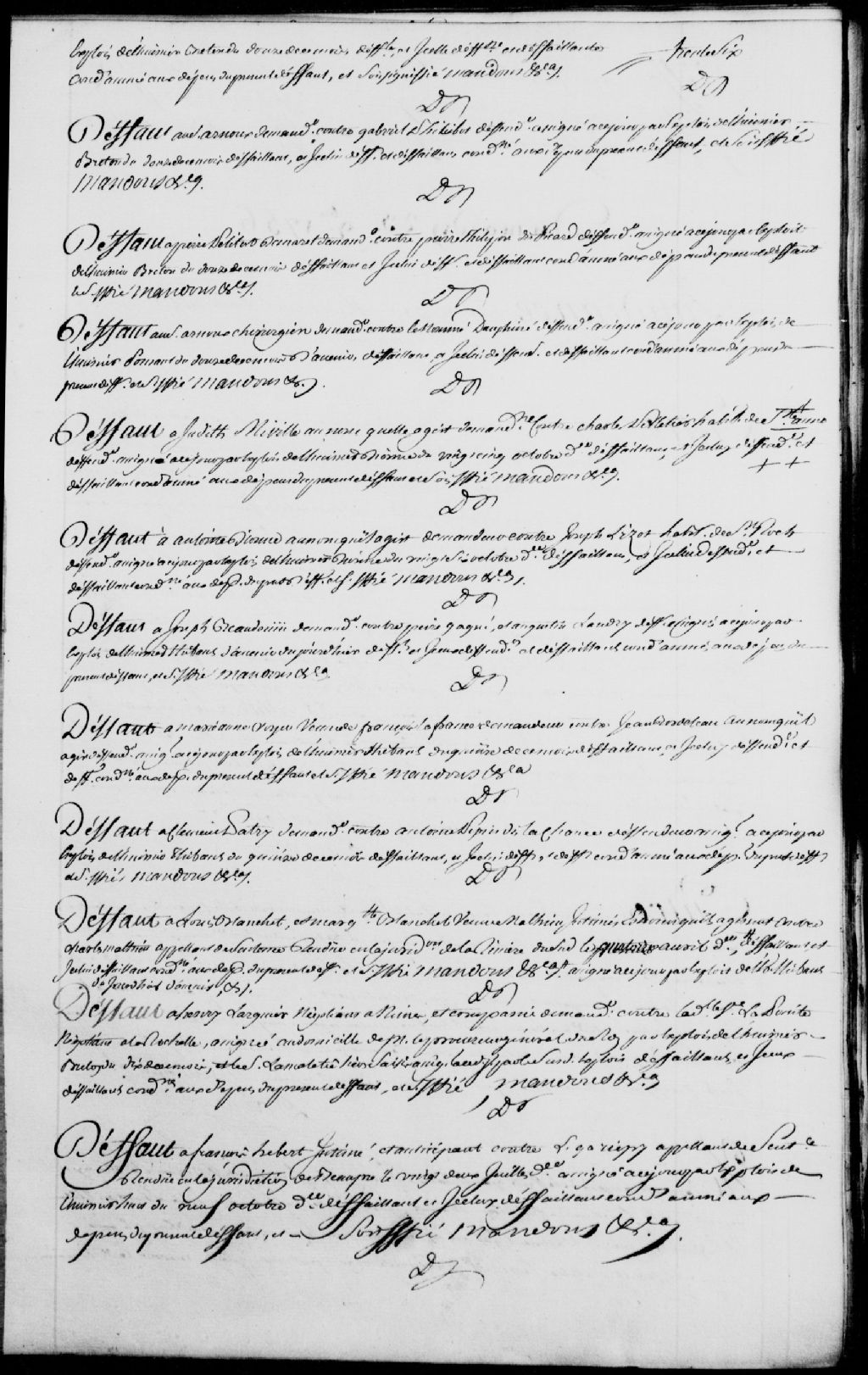Défaut à Louis Blanchet et Marguerite Blanchet, veuve du nommé Mathieu, intimés, contre Charles Mathieu, appelant de la sentence rendue en la Juridiction de la Rivière-du-Sud le 14 avril dernier et défaillant, ledit défaillant est condamné à payer les dépens
