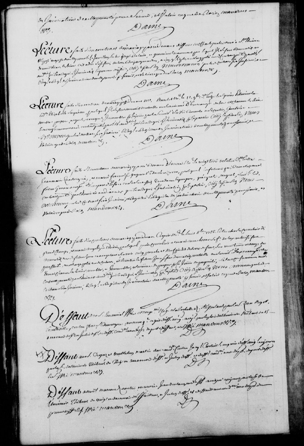 Lecture d'un contrat de mariage passé par-devant Chasle, prêtre, curé à Saint-Étienne, et déposé au greffe le 25 janvier 1757, entre Joseph Dalaire (Dallaire) et Geneviève Beaumont, il est ordonné que ledit contrat soit insinué au registre des insinuations