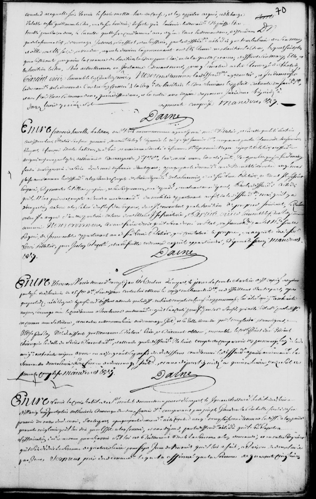 Cause entre Louis Lacroix, habitant de Saint-Michel, demandeur; et Ignace Lessard, également habitant de Saint-Michel, défendeur, comparant par Joseph Gautron la Rochelle (Larochelle), fondé de son pouvoir, il est ordonné que ledit défendeur soit condamné à payer la somme de 31 livres pour des effets fournis, en tenant compte de la somme de 14 livres qui a été déduite pour sept jours de travail à raison de 40 sols par jour, ainsi que les dépens liquidés à 8 livres, 1er mars 1757, Archives nationales à Québec, Fonds Prévôté de Québec, (03Q,TL1,S11,SS1,D107,P504).