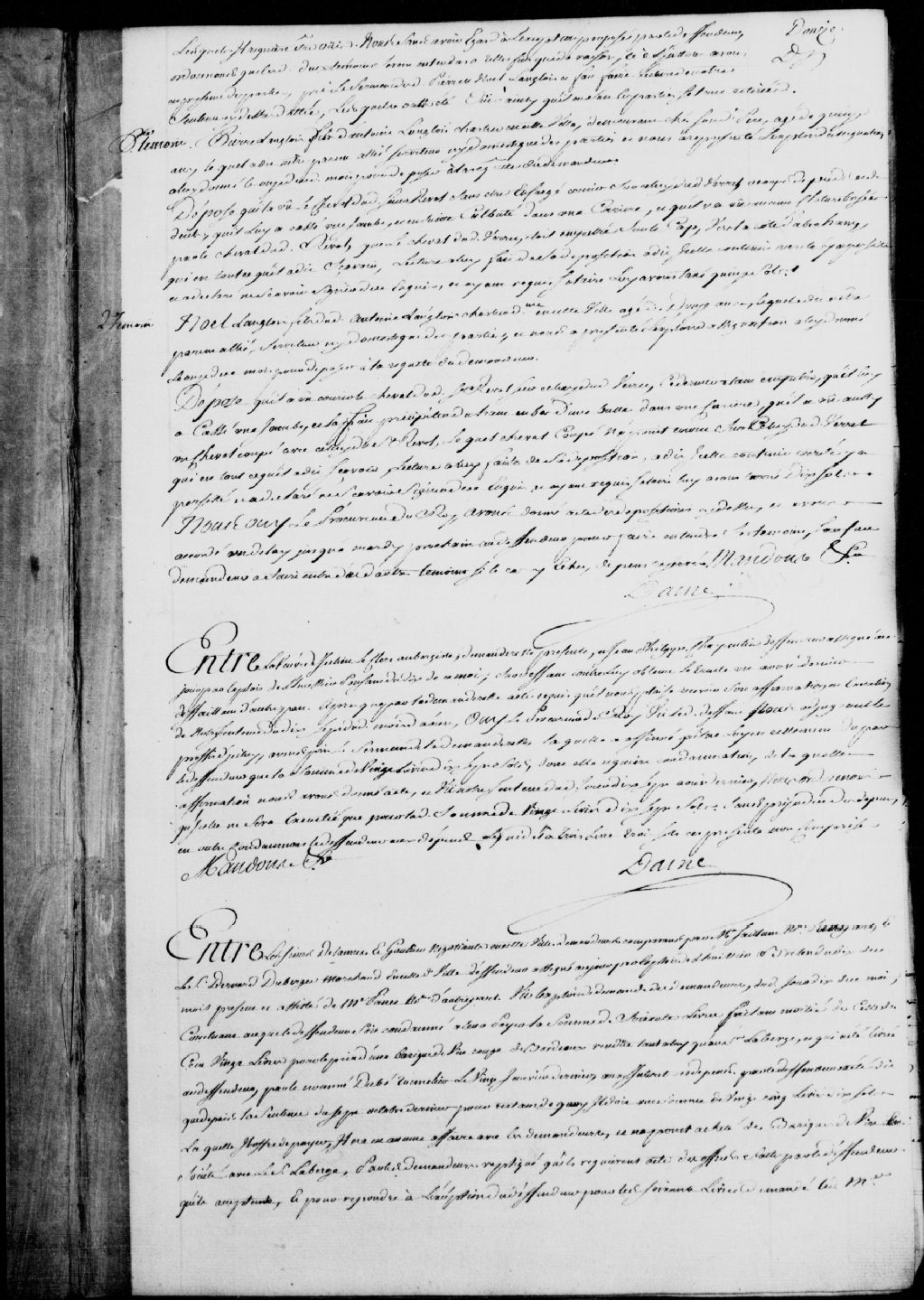 Cause entre les sieurs Delannes et Gautier (Gauthier), négociants, demandeurs, comparant par maître Saillant, notaire; et le sieur Bernard Duberger (Dubergé), marchand, défendeur, assisté de maître Panet, notaire, à propos d'une barrique de vin rouge de Bordeaux achetée par ledit défendeur et le sieur Laberge, livrée par le nommé Dubé, tonnelier, il est ordonné que lesdits demandeurs ainsi que ledit défendeur comparaissent en personne mardi prochain, dépens réservés