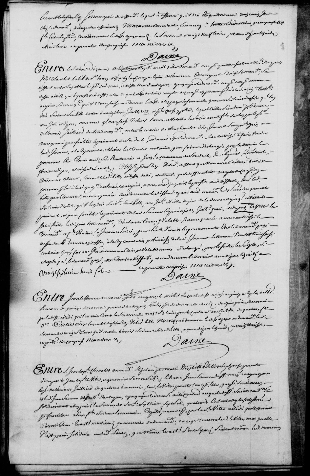 Cause entre Jean-Baptiste Chevalier, demandeur, stipulant par Marie-Élisabeth Peletier (Pelletier), son épouse; et Jean-Baptiste Levitre et Geneviève Sanson (Samson), sa femme, et encore Jean Samson, défendeurs, ledit Samson défaillant, il est ordonné que lesdits Levitre et sa femme soient condamnés à payer la somme de 33 livres et 16 sols pour un solde de compte de fournitures, ainsi que les dépens liquidés à 20 sols, alors que ledit défaillant est réassigné à comparaître et condamné à payer les dépens de son défaut