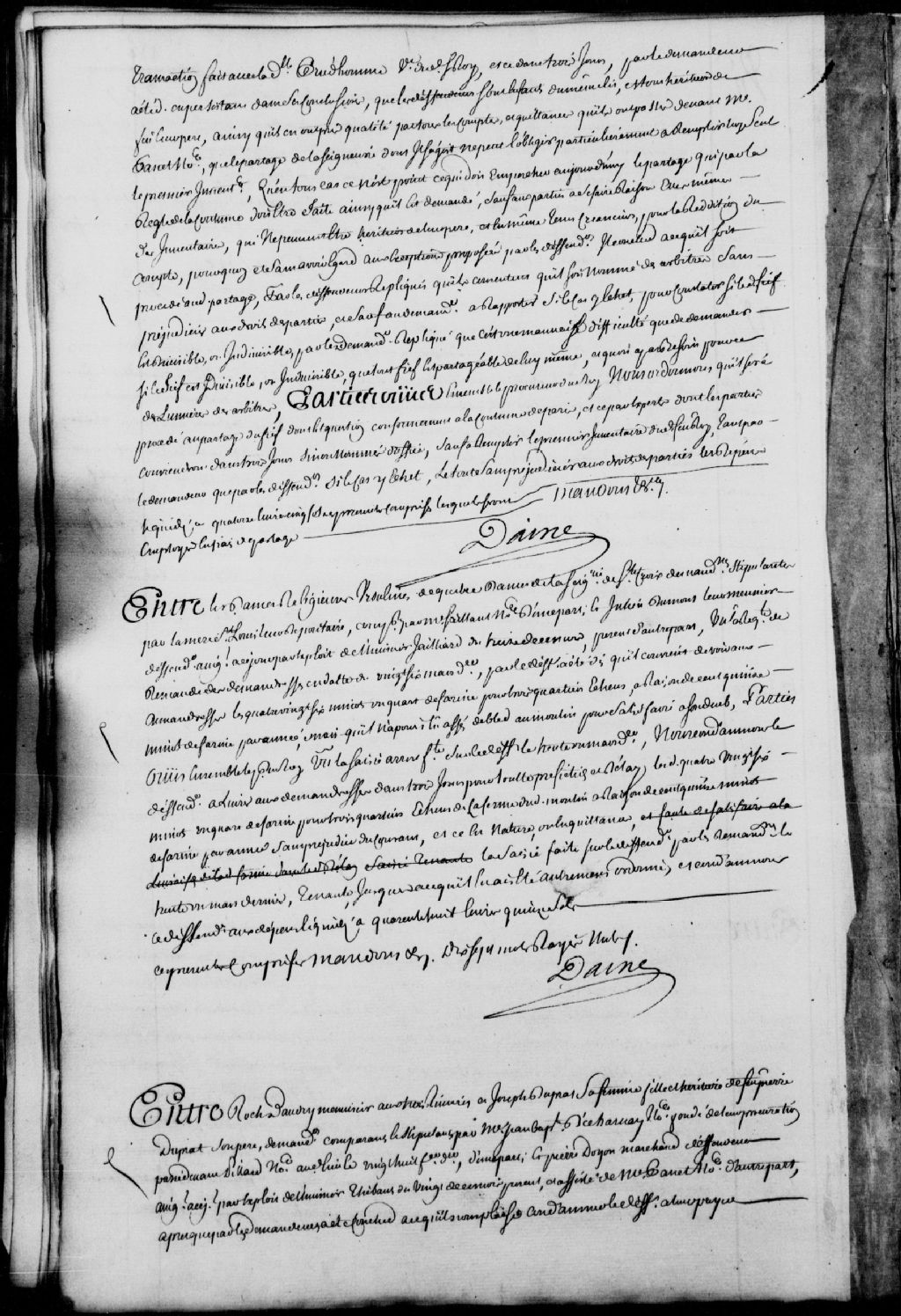 Cause entre les Dames Religieuses Ursulines de Québec, dames de la seigneurie de Sainte-Croix, demanderesses, stipulant par la mère Saint-Louis et comparant par maître Saillant, notaire; et Julien Dumont, leur meunier, défendeur, ledit défendeur déclare qu'il convient devoir les 86 minots et un quart de farine pour trois quartiers échus, à raison de 115 minots de farine par année, n'ayant pas assez de blé au moulin pour satisfaire à son dû, il est ordonné que ledit défendeur soit condamné à livrer aux demanderesses les 86 minots et un quart de farine dans un délai de trois jours, en nature ou en quittance, ainsi qu'à payer les dépens liquidés à 48 livres et 15 sols