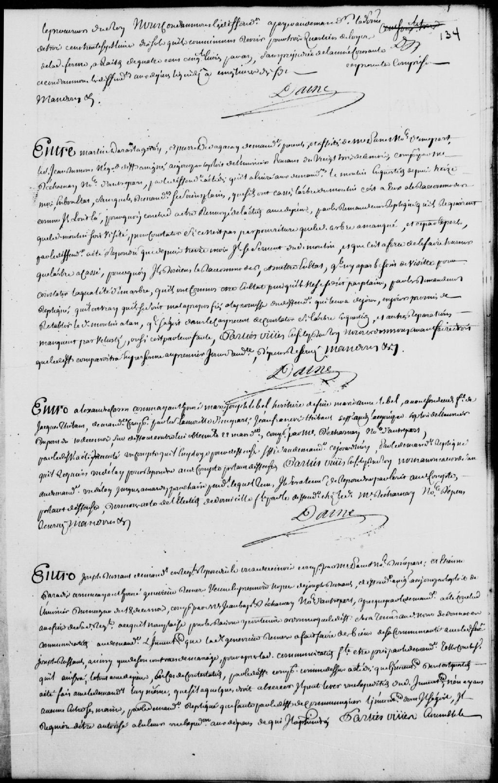 Cause entre Joseph Dussaut (Dussault), demandeurs, comparant par maître Panet, notaire; et Étienne Paradis, comme ayant épousé Geneviève Demers, veuve en premières noces de Joseph Dussaut, défendeur, comparant par maître Jean-Baptiste Decharnay, notaire, ledit demandeur réclame que le défendeur soit tenu de lui communiquer l'inventaire que ladite Demers a fait des biens de sa communauté avec ledit défunt Dussaut ainsi que son contrat de mariage, il est ordonné que l'inventaire en question soit communiqué au demandeur avant de faire droit aux parties, dépens réservés
