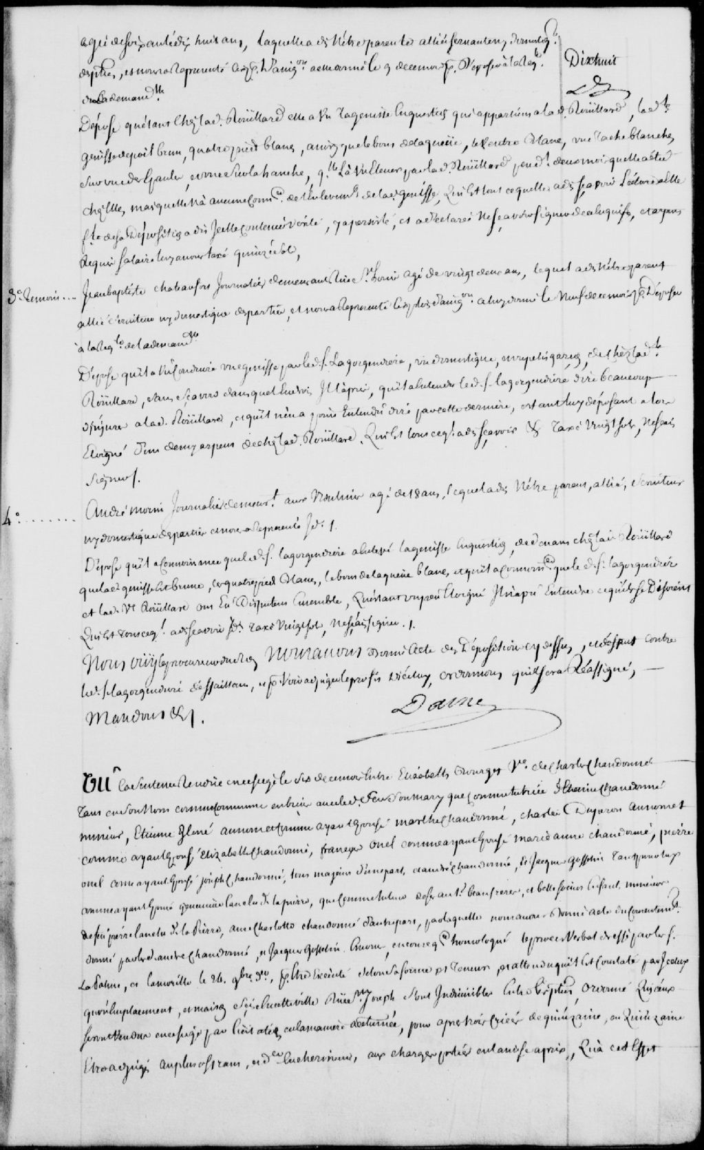 Vente d'un emplacement et maison sis rue Saint-Joseph à Québec, suite à la sentence rendue le 6 décembre 1757 dans la cause entre Élizabeth Bourget, veuve de feu Charles Chandonné (Chandone), tant en son nom comme commune en biens avec son dit défunt époux que comme tutrice d'Étienne Chandonné (Chandone), mineur, Étienne Glene, comme époux de Marthe Chandonnée (Chandone), Charles Duperon (Perron - Duperron), comme époux d'Élizabeth Chandonnée (Chandone), François Onel (Onelle), comme époux de Marie-Anne Chandonnée (Chandone), Pierre Onel (Onelle), comme époux de Josèphe Chandonnée (Chandon), tous majeurs, demandeurs, et André Chandonnée (Chandone) et Jacques Gosselin, tant pour lui comme époux de Geneviève Lanclu dit LaPierre que comme tuteur de ses beaux-frères et belles-soeurs, enfants mineurs de feu Pierre Lanclu dit LaPierre et de Charlotte Chandonnée (Chandone), défendeurs ; mention de Jacques Gosselin ; mention du procès-verbal dressé par les sieurs LaMorille et LaPalme, le 24 novembre 1757, déclarant ledit emplacement et maison indivisible entre les parties ; il est ordonné de procéder à la première criée et, ne s'étant présenté aucun enchérisseur, ladite vente est reportée, 13 décembre 1757, Archives nationales à Québec, Fonds Prévôté de Québec, (03Q,TL1,S11,SS1,D108,P106).