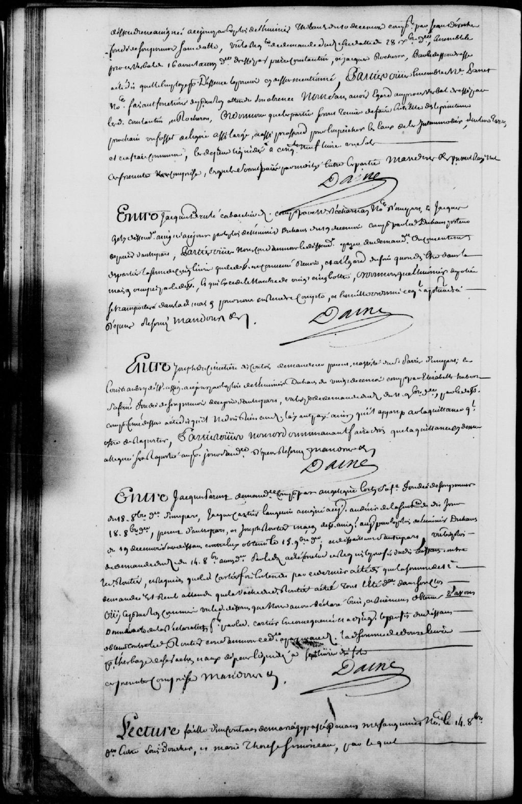 Cause entre Joseph DuCimetière dit Courtois, demandeur, assisté du sieur Paré, et Louis Aubry, défendeur, comparant par Élizabeth Hubert, son épouse fondée de son pouvoir ; il est ordonné que la quittance dont il est question sera rapportée au prochain jour d'audience