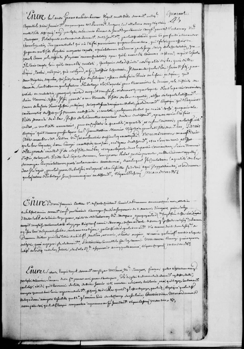 Cause entre le sieur André Grasset de Saint-Sauveur, négociant de Québec, demandeur, comparant par maître Panet, notaire, et le sieur Malroux (Malro), négociant de Québec, défendeur, comparant par maître Decharnay, notaire, et Jean-Mathieu Mounier (Monnier - Monier), négociant, nommé comme expert, à propos de bas (de foyer) ; il est ordonné d'envoyer deux experts afin de constater la qualité desdits bas, et de communiquer au défendeur la facture d'emballage