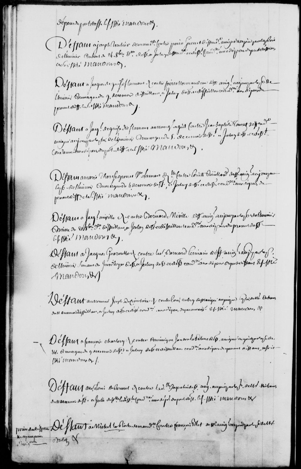 Défaut à Jacques de Guise (Deguise) Flamant (Flamand), demandeur, contre Pierre Normandeau, défendeur et défaillant, lequel est condamné aux dépens