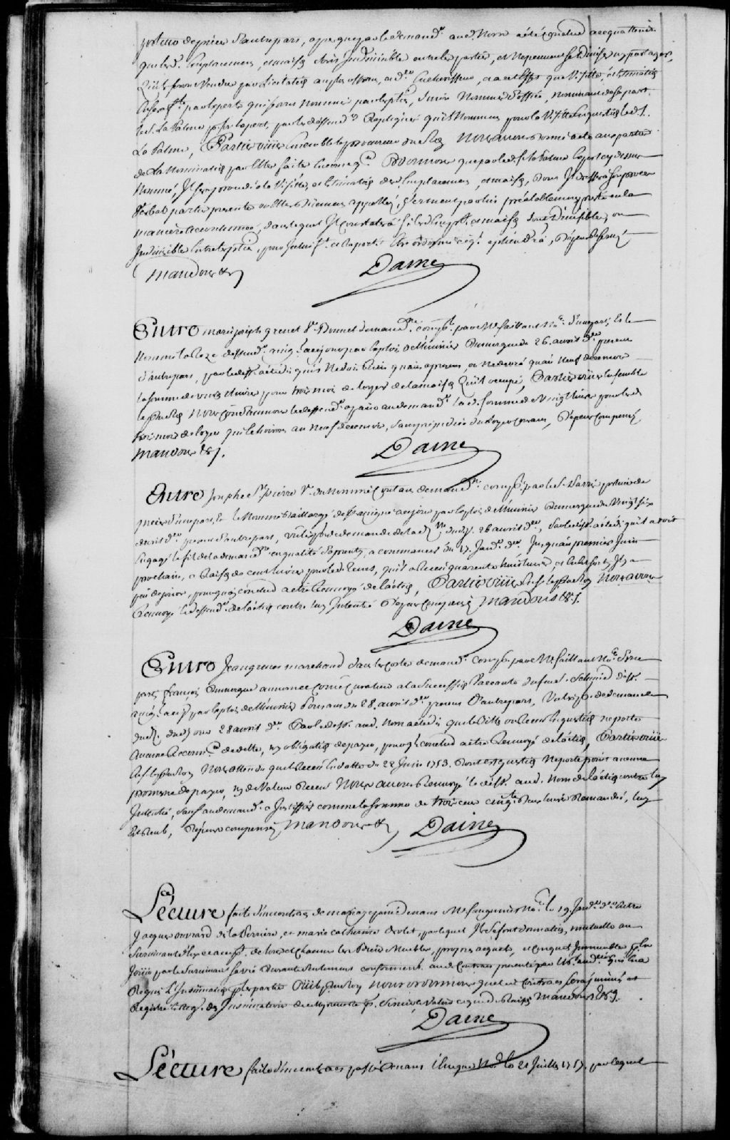 Cause entre Josèphe Saint-Pierre, veuve du feu nommé Coutant (Contant), demanderesse, comparant par le sieur Parré (Paré), porteur de pièces, et le nommé Baillargé, défendeur, lequel est renvoyé de l'action contre lui intentée, ledit défendeur ayant engagé le fils de la demanderesse en qualité d'apprenti du 17 janvier 1758 au 1er juin 1758