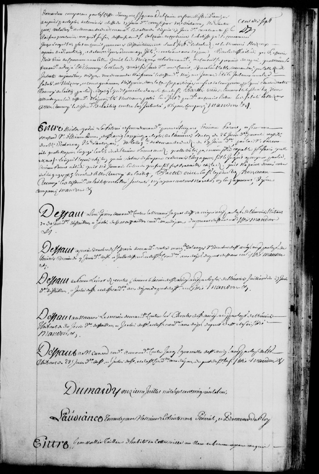 Cause entre Jean Vallée, tailleur d'habits de Québec, au nom et comme ayant acquis les droits du nommé Pierre Leurope (Europe) dit Berry père et d'Ignace-Joseph Leurope (Europe) dit Berry fils, par contrat passé devant maîtres Sanguinet et Dulaurent, notaires royaux, le 2 juin 1758 et le 15 juin 1758, en cette qualité propriétaire pour moitié d'un emplacement et maison sis rue Saint-Louis, lequel emplacement provient de la communauté qui fut entre ledit Berry père et feue Marie Michelon, demandeur, comparant par maître Decharnay, notaire, et Joseph Leurope (Europe), mineur émancipé d'âge, procédant sous l'autorité de Henri Gatien (Gacien), son curateur aux causes, héritier de ladite feue Michelon, le nommé Joseph Leurope (Europe) Loubier, au nom et comme tuteur dudit mineur, défendeurs, lesdits Loubier et Gatien présents, afin de faire déclarer l'emplacement en question comme étant indivisible entre les parties ; le sieur Lapalme, architecte, est nommé pour procéder à la visite dudit emplacement et en dresser un procès-verbal