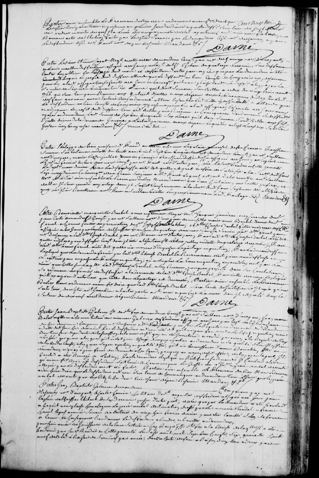 Cause entre Marguerite Barbel, veuve en premières noces du feu sieur Jacques Gourdeau, et en secondes noces de feu Pierre Côté, demanderesse, comparant par maître Saillant, notaire, et demoiselle Marie-Anne Barbel, veuve du feu sieur Fornel, et comme fondée de la procuration du sieur Joseph Barbel, absent, demoiselle Thérèse Barbel, fille majeure, défenderesses, ladite Fornel comparant par maître Ducharnay, notaire, et ladite Thérèse Barbel, comparant par maître Panet, notaire ; il est ordonné à ladite Thérèse Barbel de justifier comment il n'y a qu'une seule terre, l'une étant à Saint-Joachim et l'autre étant à Sainte-Anne, et que c'est bien de la même terre qu'il s'agit dans la sentence du 19 avril 1758