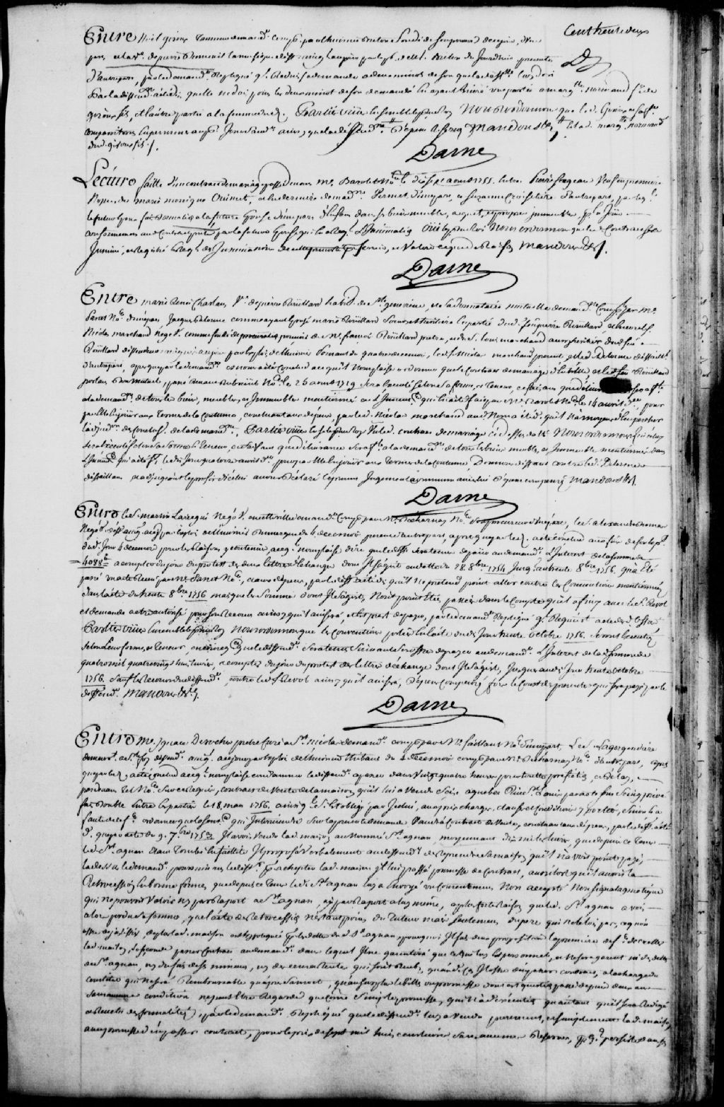 Cause entre le sieur Martin Larecqui (Larreguy), négociant de Québec, demandeur, comparant par maître Decharnay, notaire, et le sieur Alexandre Dumas, négociant, défendeur ; mention de deux lettres en date des 28 octobre 1754 et 30 octobre 1756 ; il est ordonné que la convention entre les parties en date du 30 octobre 1756 sera exécutée selon sa forme et teneur, et ledit défendeur est condamné à payer les intérêts de la somme de 4088 livres