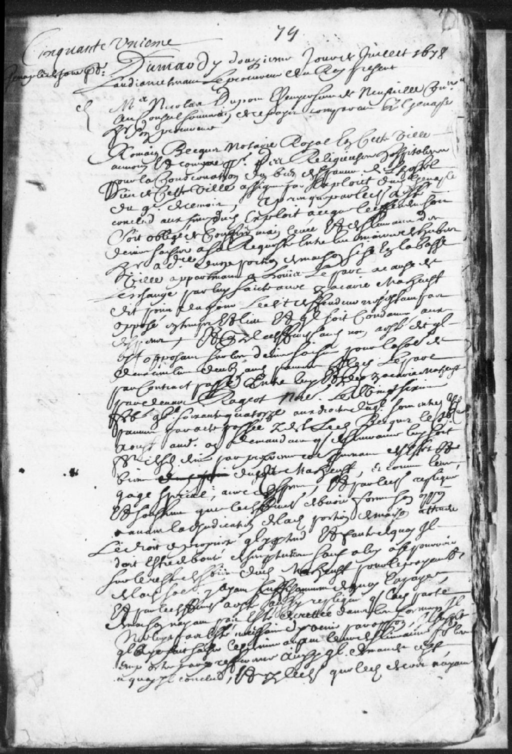 Cause entre maître Nicolas Dupont, écuyer, sieur de Neuville, conseiller au Conseil souverain de la Nouvelle-France, demandeur, comparant par Genaple, son procureur, et Romain Becquet, notaire royal de Québec, au nom et comparant pour les Religieuses Hospitalières pour la conservation des biens des Pauvres de l'Hôtel-Dieu de Québec, à propos d'une portion de maison sise à la Basse-Ville appartenant à Louis Leparc ; il est fait mention de Zacharie Maheu et d'un contrat passé entre lesdits Leparc et Maheu devant Rageot, notaire, le 26 février 1674, et il est ordonné que les pièces et papiers seront mis au greffe pour que le tout soit communiqué au procureur du roi