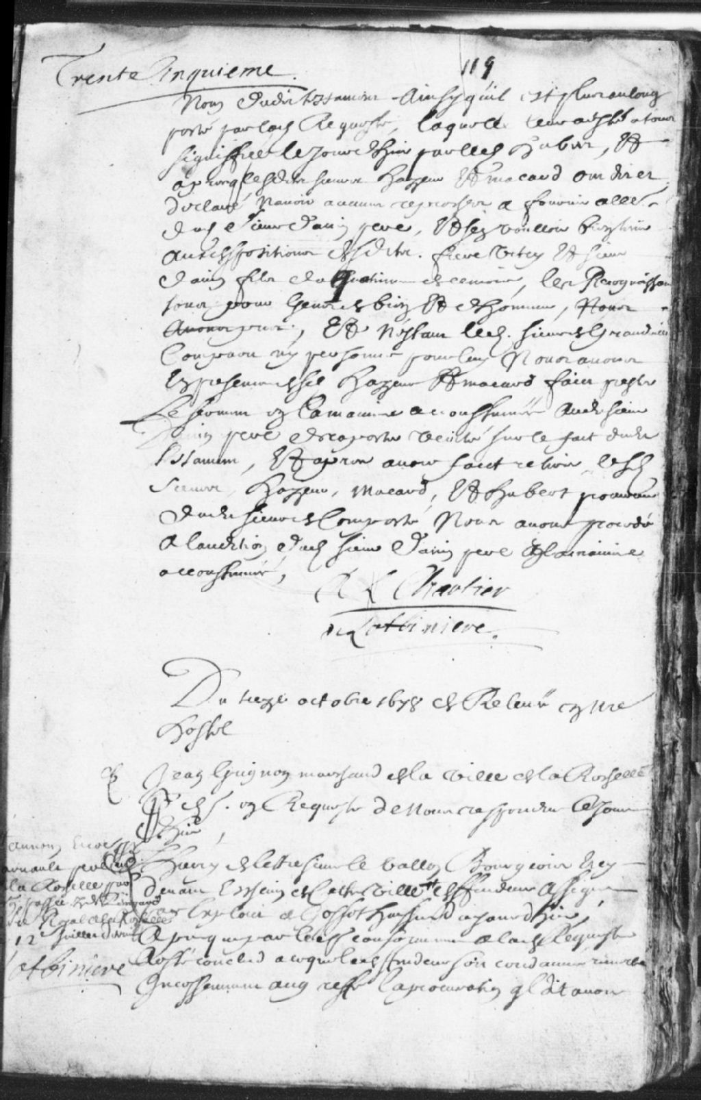 Cause entre Jean Grignon, marchand, demandeur, et Thierry Delestre dit Le Vallon (DuValon), bourgeois de Québec, défendeur, à propos d'une procuration que le défendeur dit avoir reçue du nommé Arnaud père, marchand de La Rochelle ; il est fait mention de la succession du feu Antoine Grignon, père dudit demandeur, il est ordonné que la procuration en question sera mise au greffe pour qu'il en soit donné copie au demandeur, et la cause est reportée au lendemain