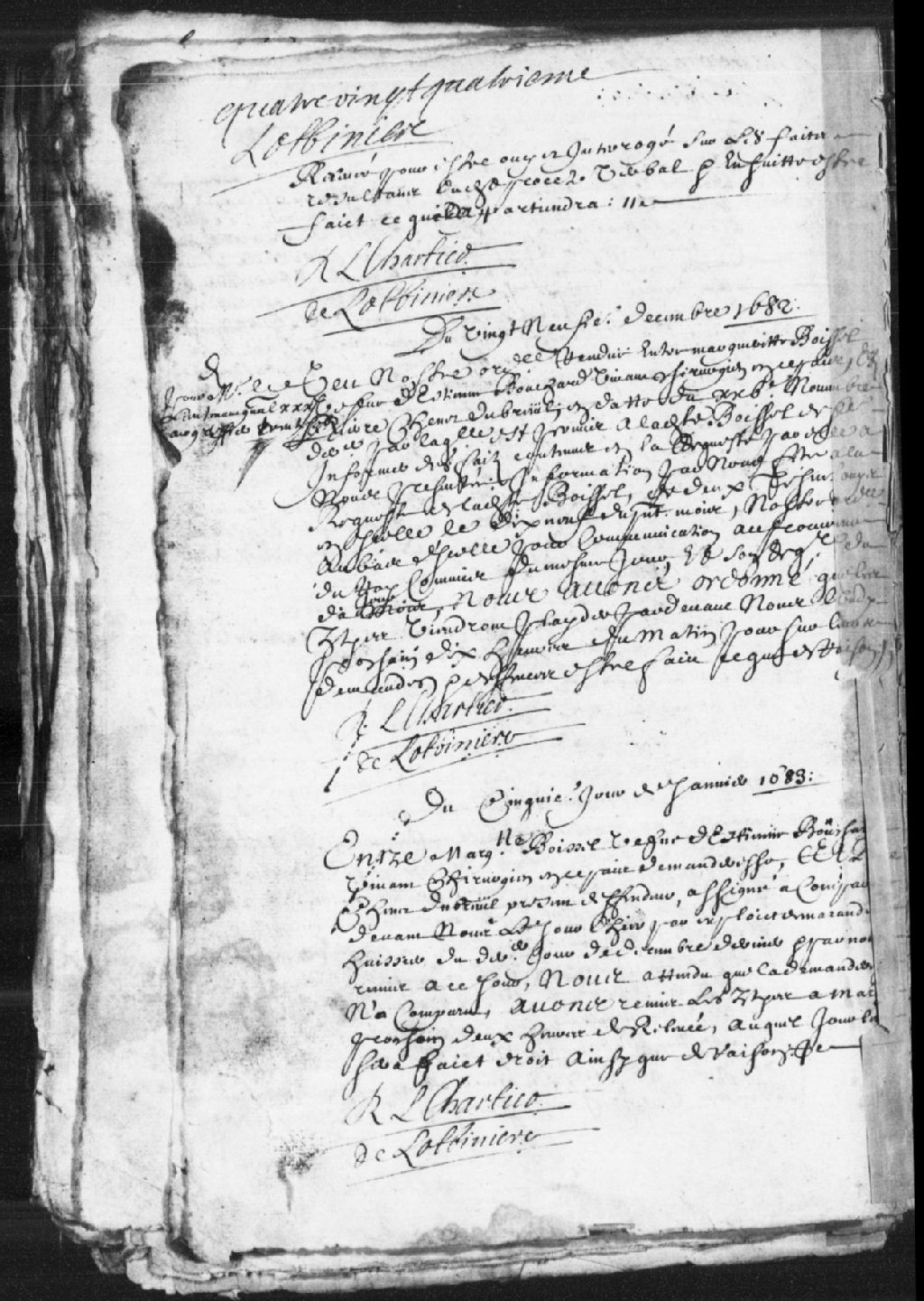 Cause entre Marguerite Boissel, veuve du feu Étienne Bouchard, de son vivant chirurgien en Nouvelle-France, demanderesse, et Pierre Chenet dit Dubreuil, défendeur, et attendu que la demanderesse n'a pas comparu, les parties sont réassignées
