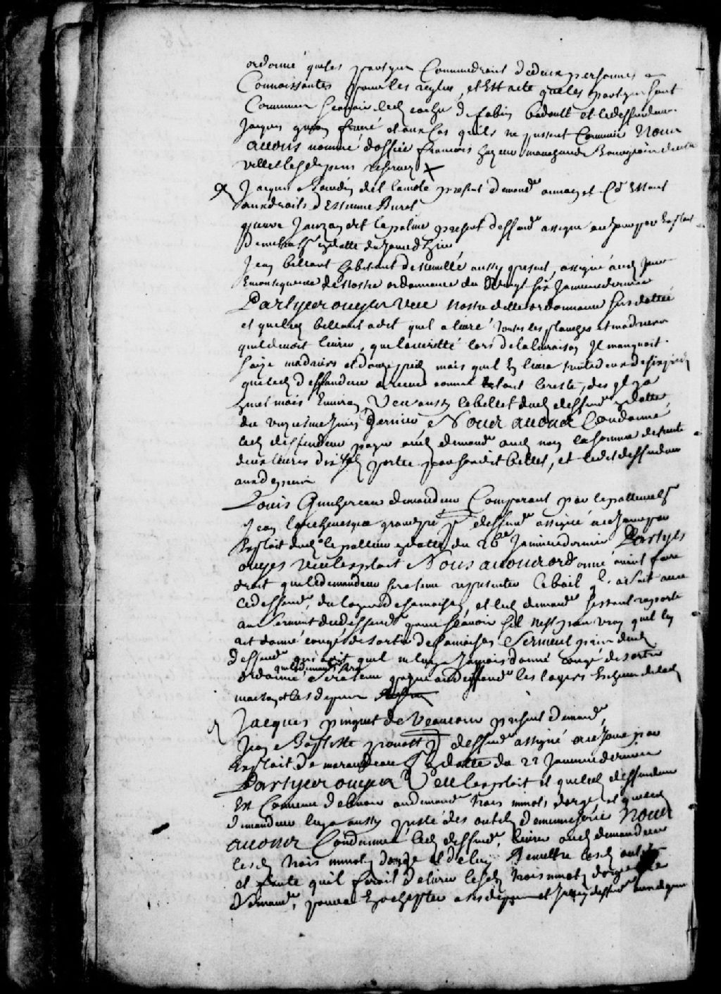 Cause entre Jacques Pinguet de Vaucour (Vaucourt - Vaucours), demandeur, et Jean-Baptiste Provost (Prévost), défendeur, à propos de minots d'orge et d'outils de menuiserie ; le défendeur est condamné à livrer au demandeur les trois minots d'orge en question et à remettre les outils, avec dépens