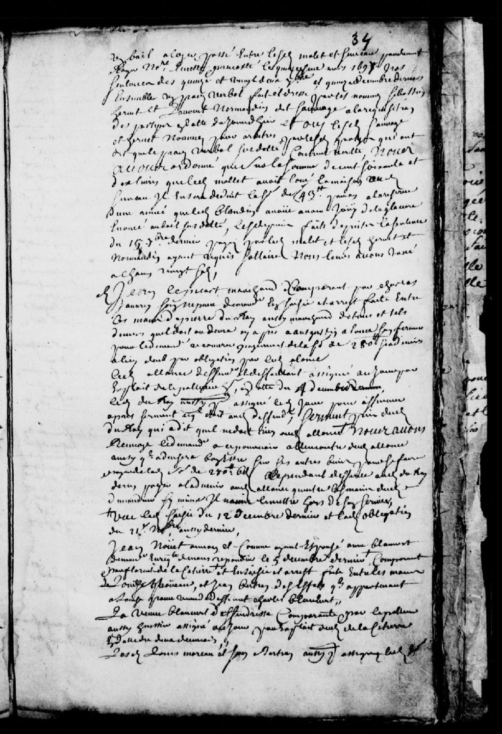 Cause entre Jean Noël, au nom et comme ayant épousé Anne Blanvert, demandeur, comparant par Florent de La Cetière (Lacetière), et Louise Proulx, veuve de feu Charles Blanvert, défenderesse ; mention d'une saisie, faite sur Louise Drousson et Jean Bertrand, d'effets appartenant à Louise Proulx, ordonnance à l'effet que Louis Moreau et Jean Bertrand devront affirmer par serment ce qui a appartenu à ladite défenderesse, mention de minots de blé et d'avoine, ainsi que de foin, et ordonnance de main levée à ladite Proulx sur ledit Moreau