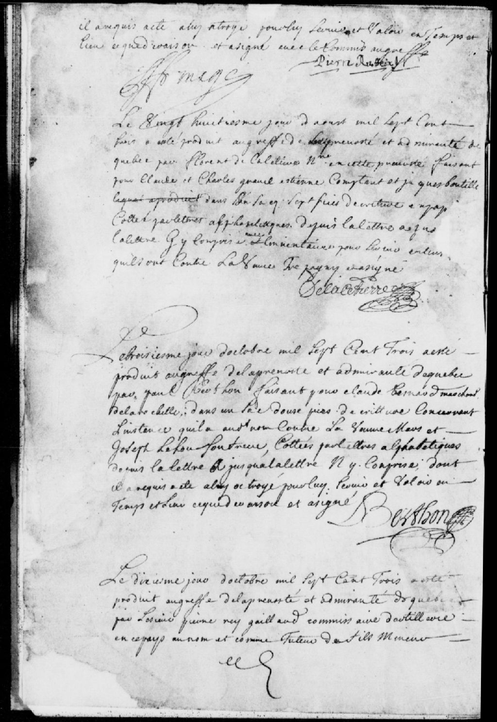Comparution de Paul Berthon (Breton), faisant pour Claude Bernard, marchand de La Rochelle, et mention de douze pièces d'écriture concernant l'instance que ledit Bernard a avec la veuve Mars et Joseph Lehoux, son frère, lesdites pièces cotées de A à N