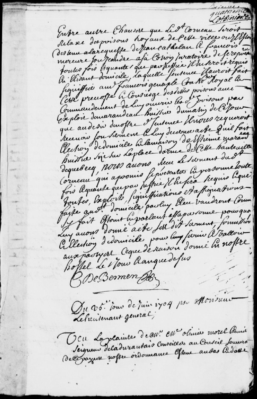 Requête d'Olivier Morel, seigneur de la Durantaye (LaDurantaye), conseiller au Conseil souverain en Nouvelle-France, pour que Charlotte Moussion (Mossion), Robert Moussion, son père, et Gabriel Duprat soient assignés, pour venir témoigner au sujet d'un rapt et de subordination commis sur la personne de Charles Morel, écuyer, fils du requérant, 25 juin 1704, Archives nationales à Québec, Fonds Prévôté de Québec, (03Q,TL1,S11,SS1,D44,P5).