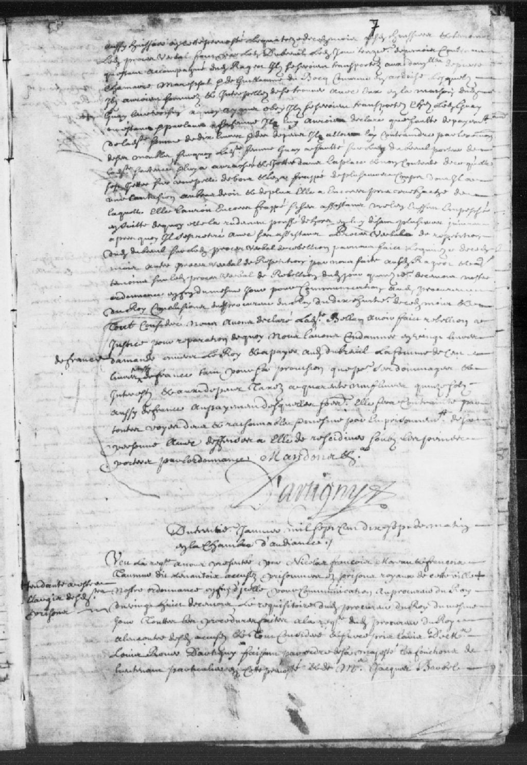 Procès de Nicolas-François Moreau et de François Thaumur dit LeNantois (LeNantais), accusés et prisonniers, lesquels seront confrontés l'un à l'autre, et confrontés aux témoins entendus en information, 30 janvier 1717, Archives nationales à Québec, Fonds Prévôté de Québec, (03Q,TL1,S11,SS1,D54,P16).